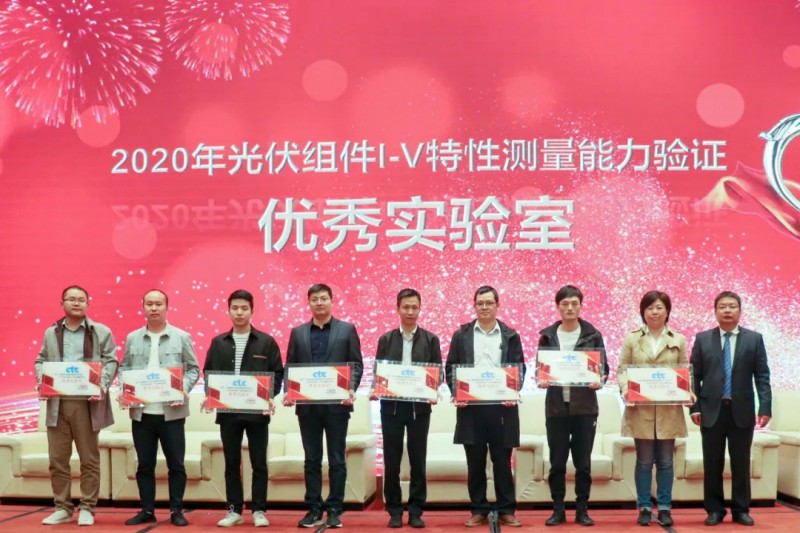 此次會(huì)議對(duì)常熟阿特斯陽(yáng)光電力科技有限公司光伏測(cè)試中心、常州亞瑪頓股份有限公司中心實(shí)驗(yàn)室、滁州隆基樂(lè)葉光伏科技有限公司檢測(cè)中心、東方日升新能源股份有限公司實(shí)驗(yàn)室、海寧正泰新能源科技有限公司光伏檢測(cè)中心、合肥晶澳太陽(yáng)能科技有限公司實(shí)驗(yàn)室、環(huán)晟光伏(江蘇)有限公司檢測(cè)實(shí)驗(yàn)室、江蘇隆基樂(lè)葉光伏科技有限公司檢測(cè)中心、江蘇賽拉弗光伏系統(tǒng)有限公司產(chǎn)品檢測(cè)中心、晉能清潔能源科技股份公司實(shí)驗(yàn)中心、晶科能源股份有限公司檢測(cè)中心(江西上饒)、晶科能源股份有限公司檢測(cè)中心(浙江海寧)、上海晶澳太陽(yáng)能科技有限公司檢測(cè)中心、泰州隆基樂(lè)葉光伏科技有限公司檢測(cè)中心、泰州中來(lái)光電科技有限公司檢測(cè)中心、通威太陽(yáng)能(合肥)有限公司光伏實(shí)驗(yàn)中心、無(wú)錫尚德太陽(yáng)能電力有限公司光伏產(chǎn)品檢驗(yàn)實(shí)驗(yàn)室、張家港協(xié)鑫集成科技有限公司檢測(cè)中心、浙江隆基樂(lè)葉光伏科技有限公司檢測(cè)中心、浙江正泰新能源開(kāi)發(fā)有限公司光伏檢測(cè)中心、中建材浚鑫科技有限公司光伏產(chǎn)品檢測(cè)中心、中節(jié)能太陽(yáng)能科技(鎮(zhèn)江)有限公司,共計(jì)22家實(shí)驗(yàn)室,頒發(fā)了“2020年光伏組件I-V特性測(cè)量能力驗(yàn)證 優(yōu)秀實(shí)驗(yàn)室”獎(jiǎng),對(duì)東方日升新能源股份有限公司實(shí)驗(yàn)室、海寧正泰新能源科技有限公司光伏檢測(cè)中心、合肥晶澳太陽(yáng)能科技有限公司實(shí)驗(yàn)室、上海晶澳太陽(yáng)能科技有限公司檢測(cè)中心,共計(jì)4家實(shí)驗(yàn)室,頒發(fā)了“CTC國(guó)檢集團(tuán)優(yōu)秀合作實(shí)驗(yàn)室”獎(jiǎng)。