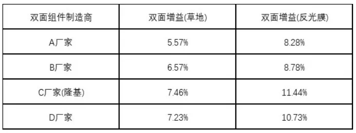 假設(shè)系統(tǒng)成本3.5元/W,在相同回收期的前提下,這部分多發(fā)電的價(jià)值可折算為3.5元/W*1.3%=0.45元/W,也即雙面組件可實(shí)現(xiàn)4.5分/W的溢價(jià)。