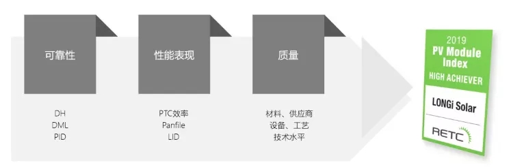 · 2019年,美國(guó)RETC實(shí)驗(yàn)室根據(jù)46家晶硅與薄膜組件制造企業(yè)送測(cè)的2500多塊組件的評(píng)估結(jié)果,首次發(fā)布了其“PV Module Index”,隆基組件憑借在可靠性、性能表現(xiàn)、質(zhì)量三個(gè)維度18項(xiàng)指標(biāo)中的全優(yōu)表現(xiàn),成為兩家獲得“High Achiever”獎(jiǎng)的企業(yè)之一(另一家為異質(zhì)結(jié)組件制造商松下)。