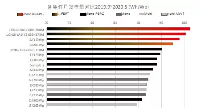 在德國(guó)PV Magazine雜志組織的“PV Magazine Test”組件戶外發(fā)電測(cè)試中,隆基雙面組件長(zhǎng)期位居發(fā)電量排行榜榜首,發(fā)電量顯著領(lǐng)先于眾多參評(píng)組件。