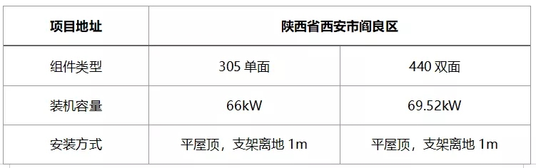 位于陜西省西安市閻良區(qū)一處居民平屋頂項(xiàng)目,安裝了雙面組件后表現(xiàn)出很好的發(fā)電性能。由于居民屋頂為水泥屋頂,反射率較高,且屋頂整體較平整,因此選用了隆基PERC雙面組件,總裝機(jī)容量達(dá)69.5kWp。項(xiàng)目具體信息如下: