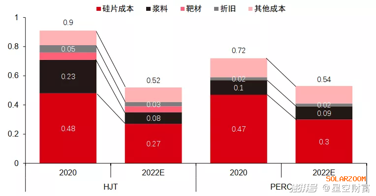 圖片:預計到 2022年HJT技術成本下降明顯