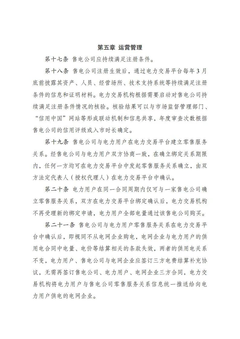 為貫徹落實《中共中央、國務院關于進一步深化電力體制改革的若干意見》(中發(fā)〔2015〕9號)和電力體制改革配套文件精神,國家發(fā)展改革委、國家能源局制定了《售電公司管理辦法》,現印發(fā)給你們,請按照執(zhí)行?!秶野l(fā)展改革委、國家能源局關于印發(fā)<售電公司準入與退出管理辦法>和<有序放開配電網業(yè)務管理辦法>的通知》(發(fā)改經體〔2016〕2120號)中《售電公司準入與退出管理辦法》廢止。