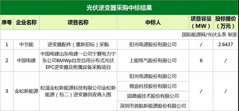 逆變器中標(biāo)項(xiàng)目有3個(gè),分別是: