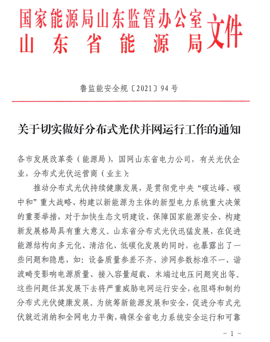 原標(biāo)題:4月1日起執(zhí)行!國家能源局山東監(jiān)管辦公室關(guān)于切實(shí)做好分布式光伏并網(wǎng)運(yùn)行工作的通知