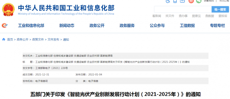 2022年1月4日,工信部等五部門聯(lián)合印發(fā)《智能光伏產(chǎn)業(yè)創(chuàng)新發(fā)展行動計(jì)劃(2021-2025年)》,其中的主要任務(wù)就包括助力“智能光伏交通”在內(nèi)的各領(lǐng)域碳達(dá)峰碳中和。加快“光伏+交通”等融合發(fā)展項(xiàng)目推廣應(yīng)用,推動交通領(lǐng)域光伏電站及充電樁示范建設(shè)。堅(jiān)持充分論證、因地制宜、試點(diǎn)先行的原則,鼓勵(lì)光伏發(fā)電在公路服務(wù)區(qū)(停車場)、加油站、公路邊坡、公路隧道、公交貨運(yùn)場站、港口碼頭、航標(biāo)等導(dǎo)助航設(shè)施、碼頭躉船、海島工作站點(diǎn)等領(lǐng)域的應(yīng)用。