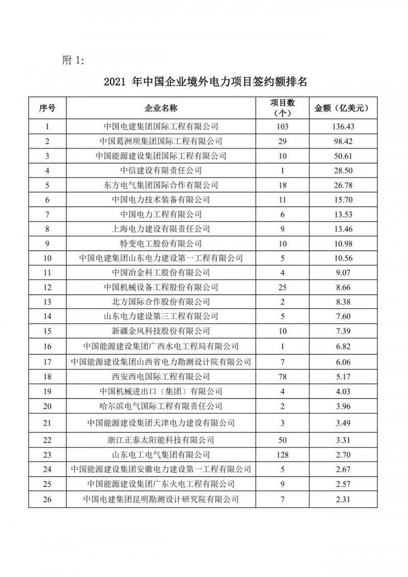 此外,2021年中國企業(yè)境外電力項目簽約額排名總榜依然是由上述企業(yè)引領(lǐng)。