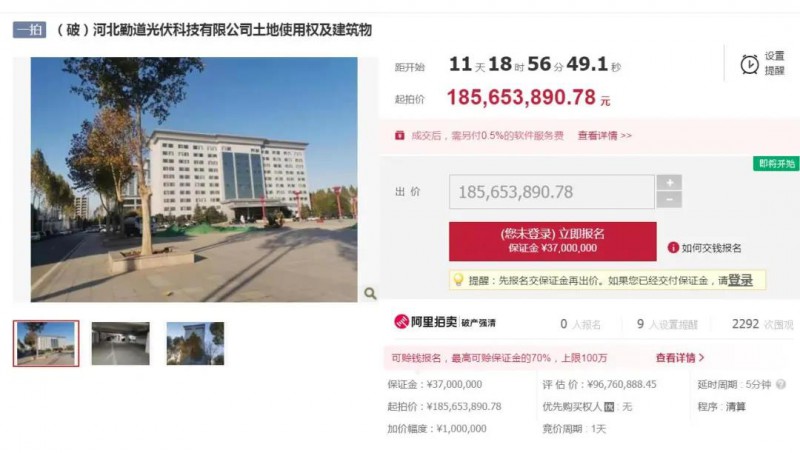 原標(biāo)題:約2.24億元起拍價(jià) 一批光伏設(shè)備、土地使用權(quán)及建筑物即將拍賣(mài)