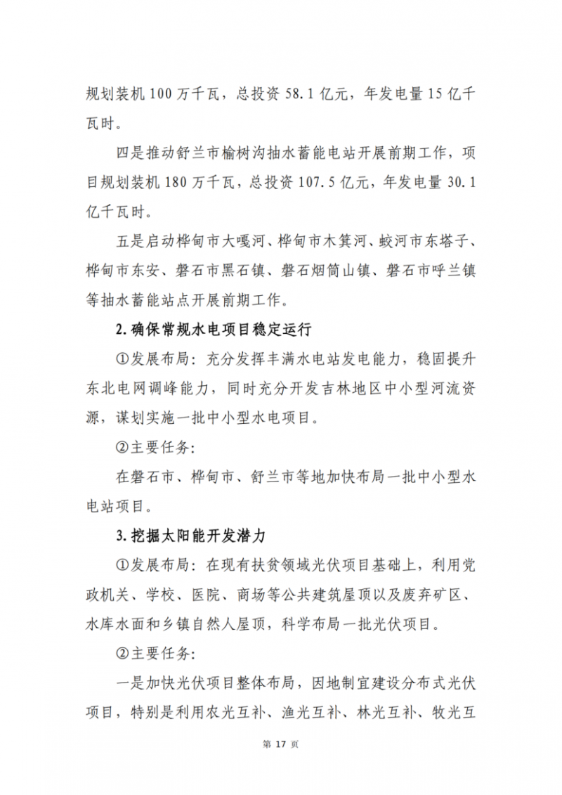 東南部綠色能源生產(chǎn)區(qū)及應(yīng)急調(diào)峰保障區(qū)。充分利用東部和南部地區(qū)的生態(tài)屏障水能資源,電網(wǎng)接入條件良好,風(fēng)、光資源豐富的優(yōu)勢(shì),加快風(fēng)電、光伏電站規(guī)模化、集中化發(fā)展,建設(shè)新能源生產(chǎn)保障基地。積極開展一批抽水蓄能電站建設(shè),優(yōu)化選址開發(fā)大型核電項(xiàng)目,進(jìn)一步增強(qiáng)風(fēng)電、光電的消納平衡能力,形成電力應(yīng)急調(diào)峰保障區(qū),為吉林電網(wǎng)及整個(gè)東北電網(wǎng)的平穩(wěn)運(yùn)行提供支撐,與生態(tài)環(huán)保高度融合,推動(dòng)?xùn)|南部地區(qū)的綠色發(fā)展。