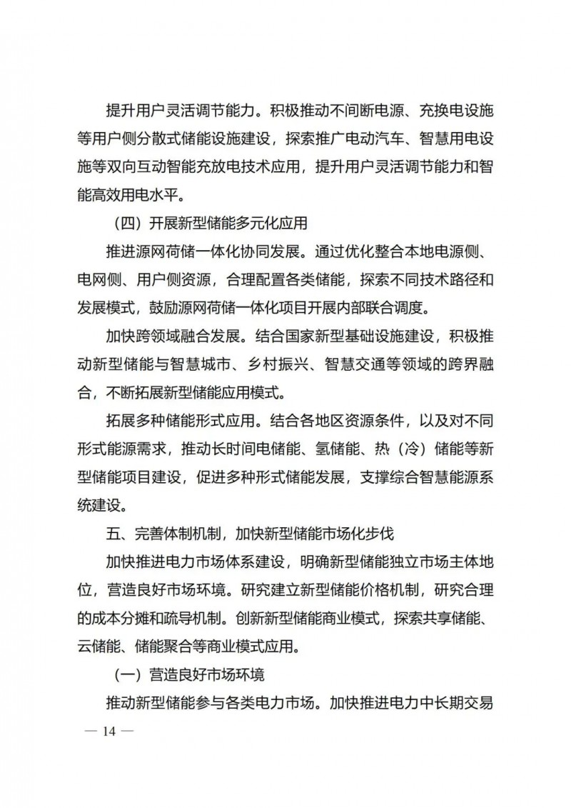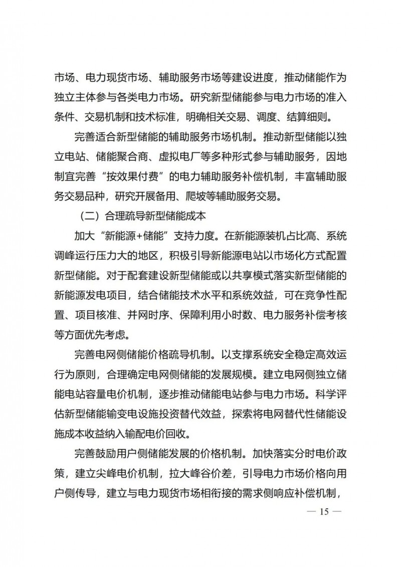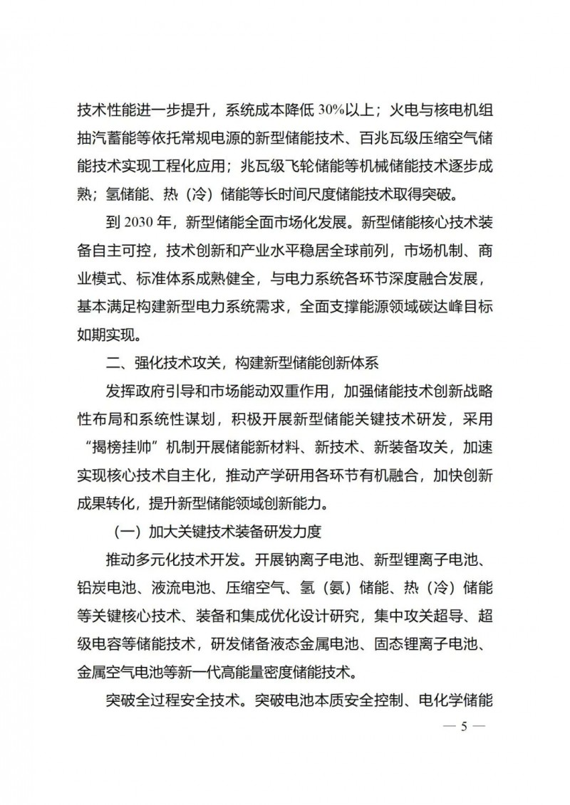 一)總體要求。一是指導(dǎo)思想中明確堅持以技術(shù)創(chuàng)新為內(nèi)生動力、以市場機(jī)制為根本依托、以政策環(huán)境為有力保障,穩(wěn)中求進(jìn)推動新型儲能高質(zhì)量、規(guī)?;l(fā)展的總體思路。二是基本原則中充分體現(xiàn)了以規(guī)劃為引領(lǐng)、以創(chuàng)新為驅(qū)動、以市場為主導(dǎo)、以機(jī)制為保障、以安全為底線的發(fā)展思路,明確統(tǒng)籌規(guī)劃、因地制宜,創(chuàng)新引領(lǐng)、示范先行,市場主導(dǎo)、有序發(fā)展,立足安全、規(guī)范管理四項發(fā)展原則。三是在發(fā)展目標(biāo)中,更注重通過支持技術(shù)和商業(yè)模式創(chuàng)新、健全標(biāo)準(zhǔn)體系、完善政策機(jī)制等措施,充分激發(fā)市場活力,推動構(gòu)建以需求為導(dǎo)向,以充分發(fā)揮新型儲能價值為目標(biāo)的高質(zhì)量規(guī)?;l(fā)展格局。