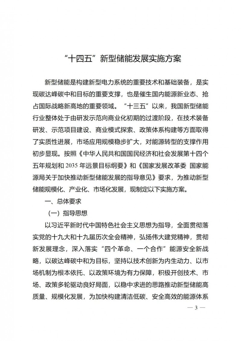 《“十四五”新型儲能發(fā)展實施方案》的通知