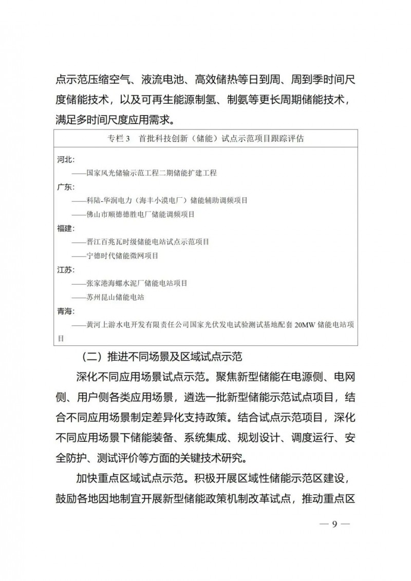 二是強(qiáng)化示范引領(lǐng)帶動產(chǎn)業(yè)發(fā)展?!秾嵤┓桨浮肪劢剐滦蛢δ芏嘣夹g(shù)路線、不同時間尺度技術(shù)和各類應(yīng)用場景,以穩(wěn)步推進(jìn)、分批實施的原則推動先進(jìn)儲能技術(shù)試點示范,加快首臺(套)重大技術(shù)裝備等重點技術(shù)的創(chuàng)新示范,以工程實踐加速技術(shù)迭代和更新,促進(jìn)成本下降;推動重點區(qū)域開展區(qū)域性儲能示范區(qū)建設(shè),結(jié)合應(yīng)用場景積極推動制定差異化政策,在一些創(chuàng)新成果多、體制基礎(chǔ)好、改革走在前的地區(qū)實現(xiàn)重點突破。結(jié)合新型儲能處于商業(yè)化初期階段實際,《實施方案》鼓勵各地在新型儲能發(fā)展工作中,堅持“示范先行”原則,避免“一刀切”上規(guī)模,積極開展技術(shù)創(chuàng)新、健全市場體系和政策機(jī)制方面的試點示范。通過示范應(yīng)用帶動技術(shù)進(jìn)步和產(chǎn)業(yè)升級,推動完善儲能上下游產(chǎn)業(yè)鏈條,支持儲能高新技術(shù)產(chǎn)業(yè)基地建設(shè)。