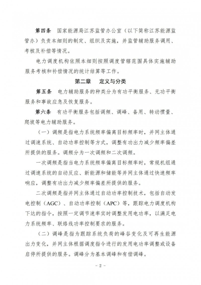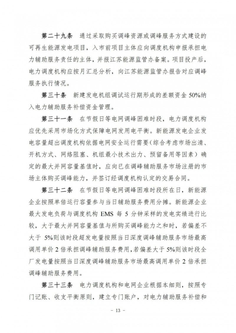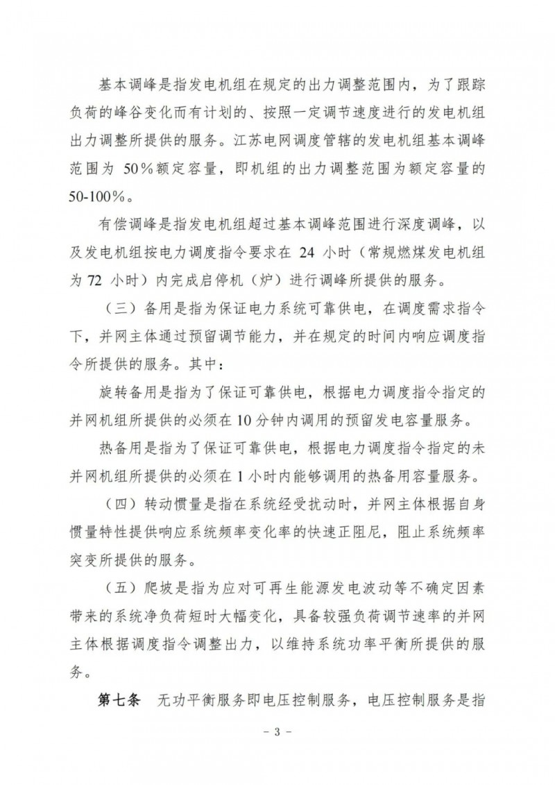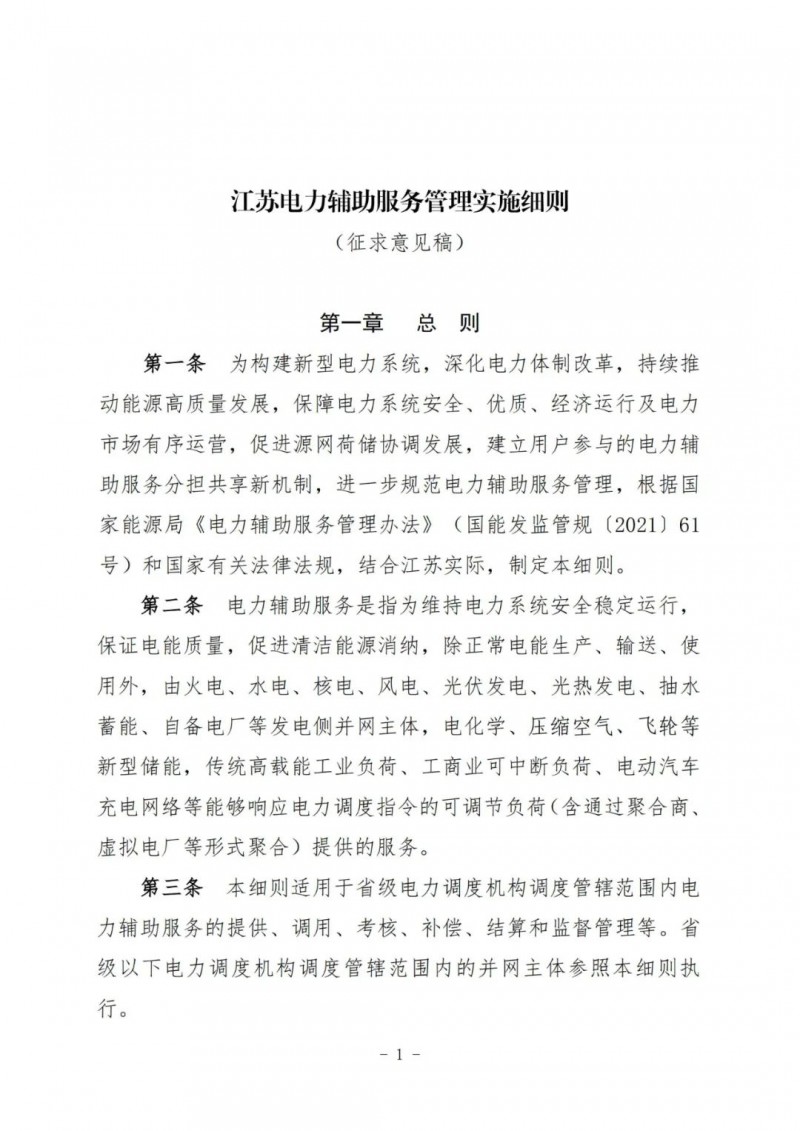 江蘇電力輔助服務(wù)管理實施細則(征求意見稿)