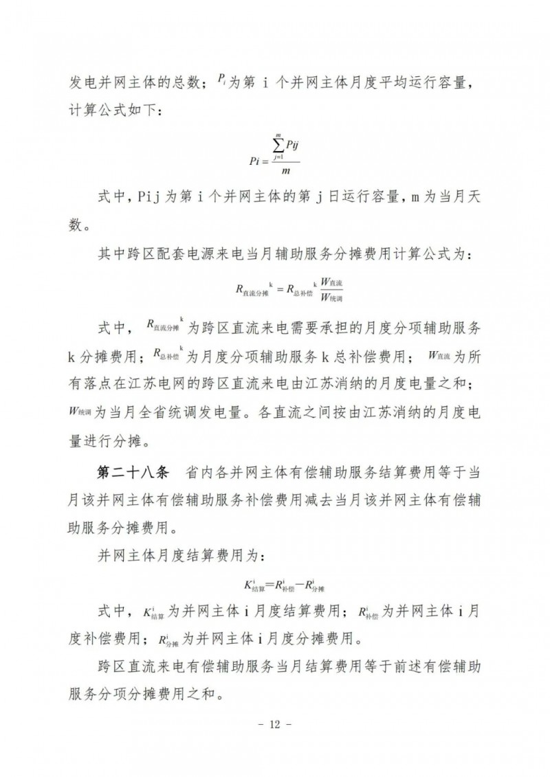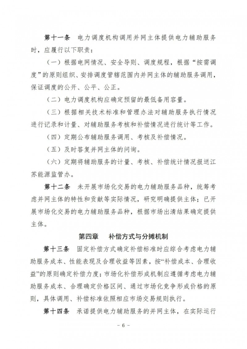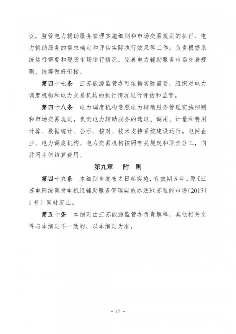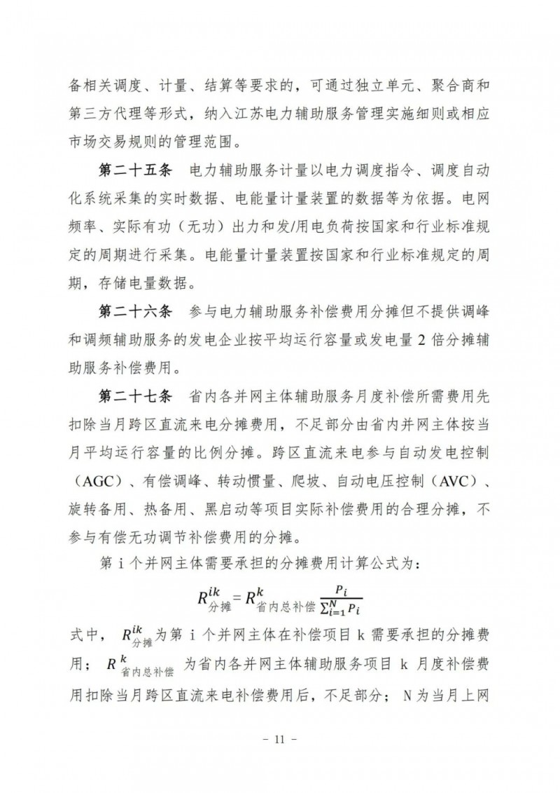 江蘇電力輔助服務(wù)管理實施細則(征求意見稿)