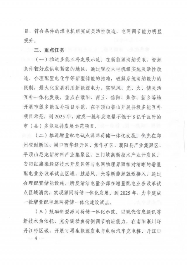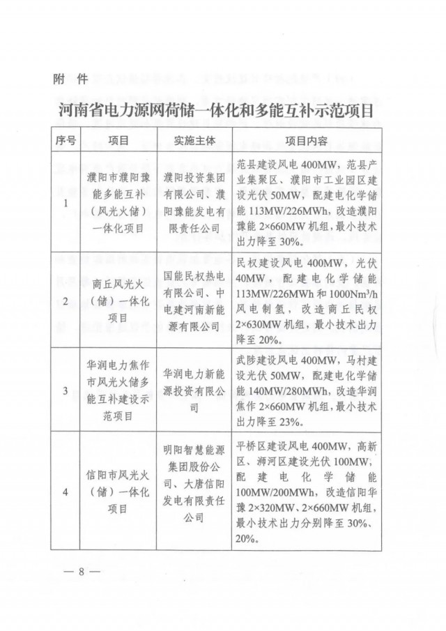 要重點(diǎn)推進(jìn)多能互補(bǔ)發(fā)展示范,最大化發(fā)展利用新能源電力,實(shí)現(xiàn)風(fēng)、光、火、儲(chǔ)靈活互補(bǔ)一體化發(fā)展。重點(diǎn)在濮陽(yáng)、商丘、信陽(yáng)、焦作、新鄉(xiāng)等地開(kāi)展市級(jí)多能互補(bǔ)項(xiàng)目示范,在平頂山魯山開(kāi)展縣級(jí)多能互補(bǔ)項(xiàng)目示范,到2025年,建成一批年發(fā)電量不低于8億千瓦時(shí)的市(縣)多能互補(bǔ)發(fā)展示范項(xiàng)目。