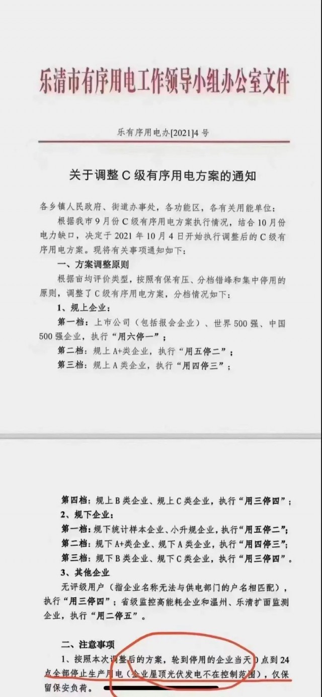 事實(shí)上,去年8、9月份就曾因煤電供應(yīng)緊張下的電力缺口和“能耗雙控”政策導(dǎo)致多地出臺(tái)了限電措施,盡管本輪限電與去年的限電背景不同,但最終帶來(lái)的結(jié)果是一致的,即停產(chǎn)停工,而安裝了分布式光伏的工廠則具有一定“豁免權(quán)”。