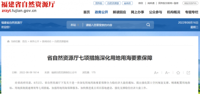 8月2日,福建省自然資源廳發(fā)布了關(guān)于進一步深化用地用海要素保障全力穩(wěn)經(jīng)濟大盤的通知,通知對福建省用海、用地做了相關(guān)落實規(guī)定。