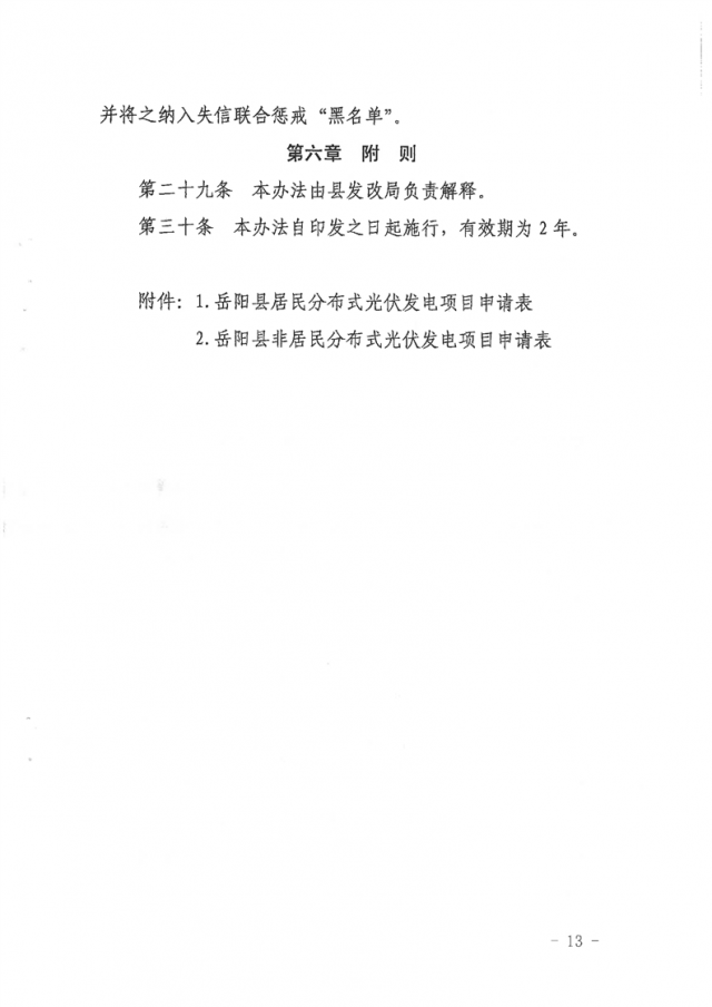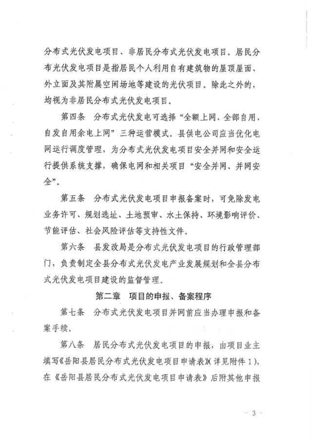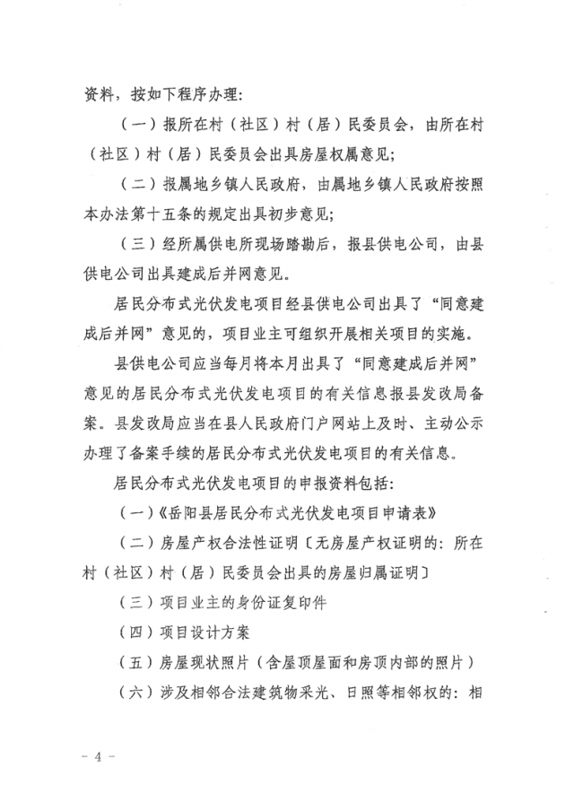 8月17日,湖南省岳陽(yáng)市岳陽(yáng)縣人民政府印發(fā)《岳陽(yáng)縣分布式光伏發(fā)電項(xiàng)目管理暫行辦法》,文件對(duì)居民分布式光伏發(fā)電項(xiàng)目、非居民分布式光伏發(fā)電項(xiàng)目申報(bào)資料予以明確。