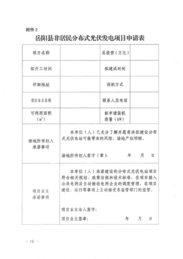 (一)《岳陽(yáng)縣非居民分布式光伏發(fā)電項(xiàng)目申請(qǐng)表》