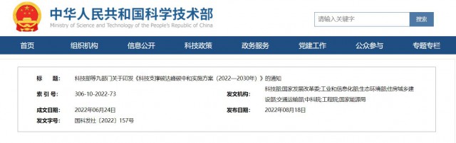 8月18日,科技部、國(guó)家發(fā)改委、工信部、生態(tài)環(huán)境部、住建部、交通部、中科院、工程院、國(guó)家能源局等九部門(mén)聯(lián)合印發(fā)《科技支撐碳達(dá)峰碳中和實(shí)施方案(2022—2030年)》。