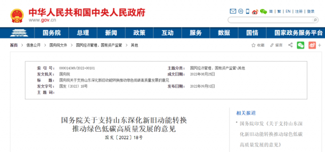 國(guó)務(wù)院關(guān)于支持山東深化新舊動(dòng)能轉(zhuǎn)換推動(dòng)綠色低碳高質(zhì)量發(fā)展的意見(jiàn)