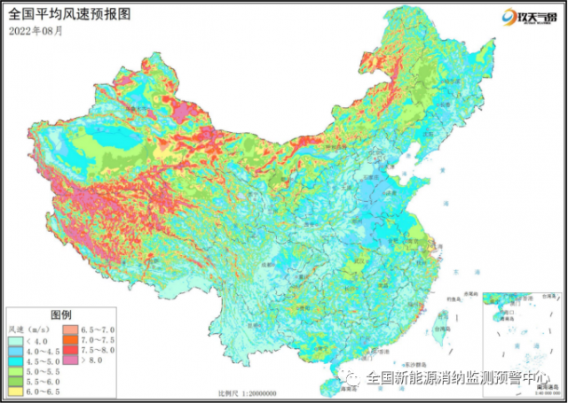 附圖3 全國(guó)2022年8月平均風(fēng)速分布預(yù)報(bào)圖