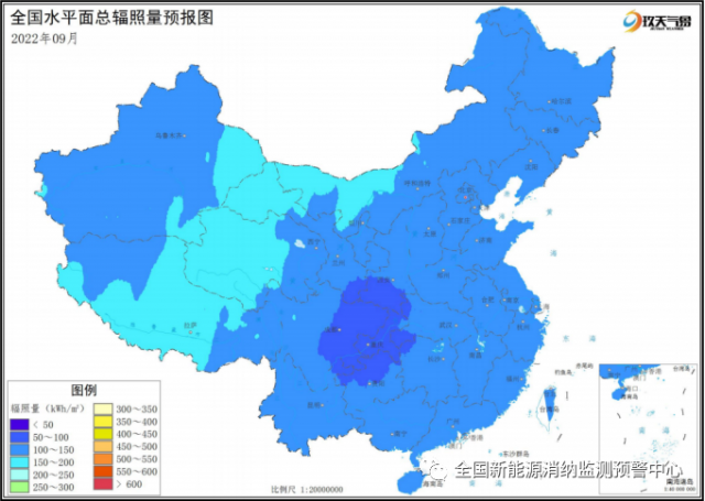 附圖6 全國(guó)2022年9月水平面總輻照量預(yù)報(bào)圖