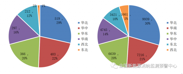 二季度各區(qū)域光伏新增(左)、累計(jì)(右)裝機(jī)(萬(wàn)千瓦)