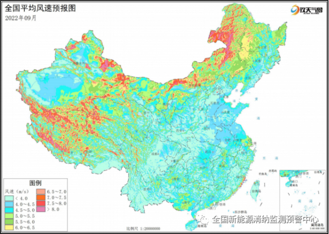 附圖5 全國(guó)2022年9月平均風(fēng)速分布預(yù)報(bào)圖