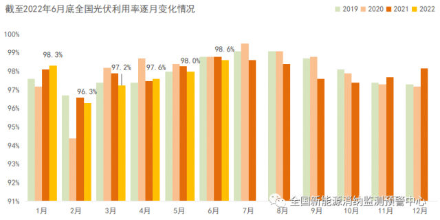 截至6月底全國(guó)光伏利用率逐月變化情況