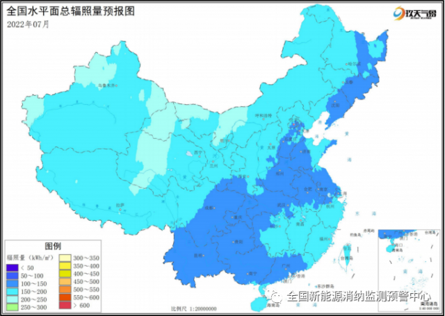 附圖2 全國(guó)2022年7月水平面總輻照量預(yù)報(bào)圖