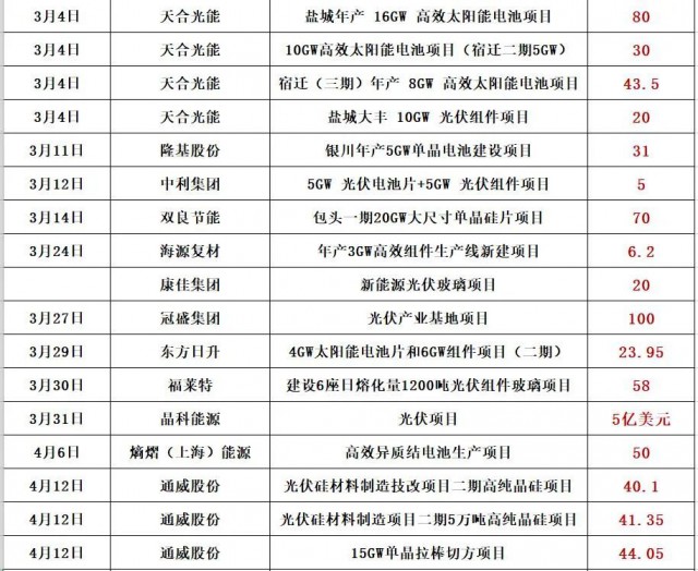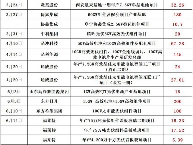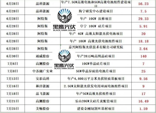 最新的消息是,通威股份擬在鹽城市投資25GW高效光伏組件項目,預(yù)計固定資產(chǎn)投資約40億元。同期消息,天合光能擬投資60億,在淮安簽約15GW電池片和15GW組件項目!