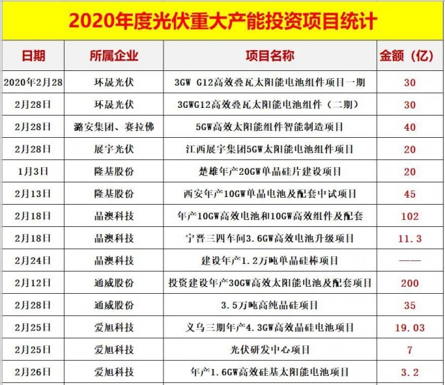 四.2020光伏新項目投資超4000億!單個項目投資額在10億元以上的就多達82個,50億元以上的有22個。