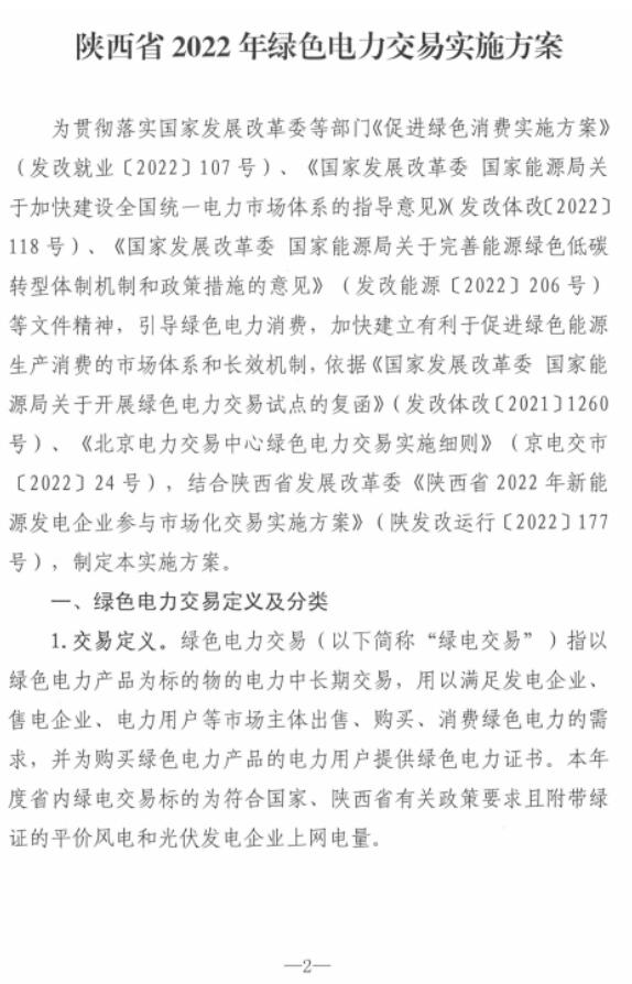陜西省2022年綠色電力交易實(shí)施方案發(fā)布!