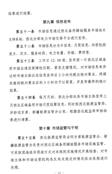 10月17日,西北能監(jiān)局公開征求《西北區(qū)域備用輔助服務(wù)市場運(yùn)營規(guī)則(征求意見稿)》意見建議的通知。