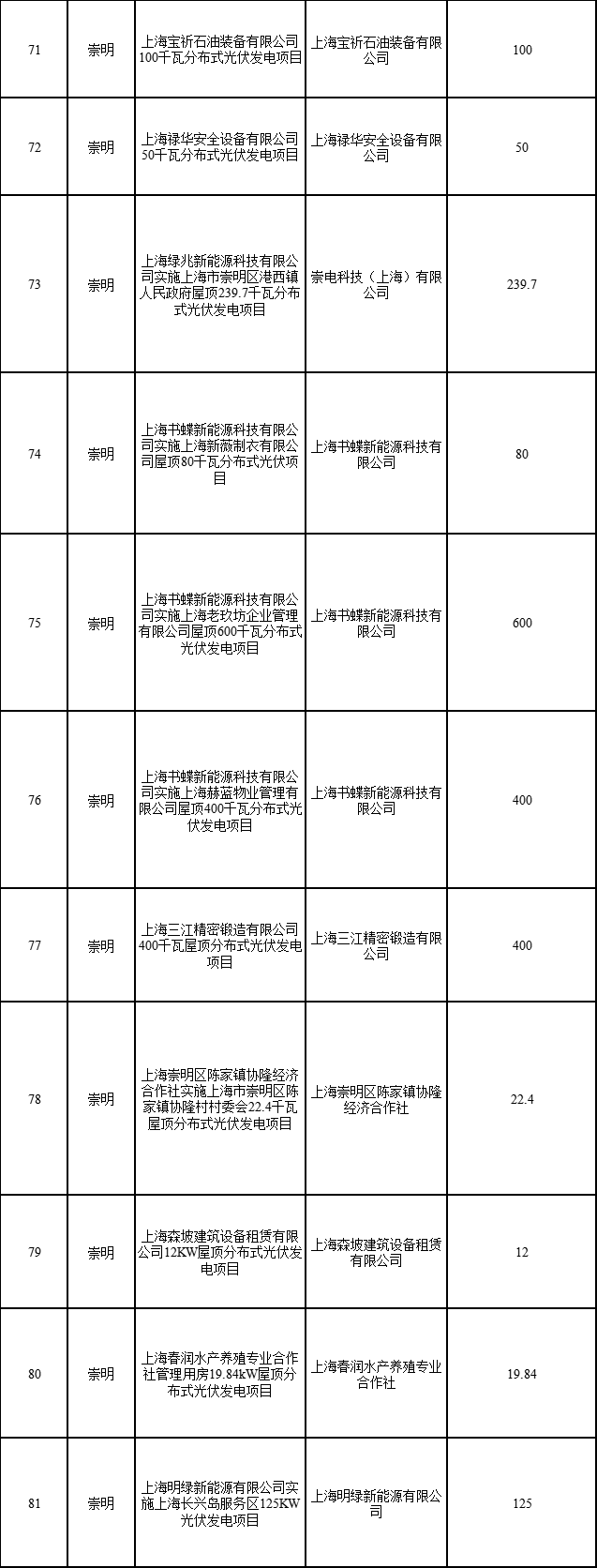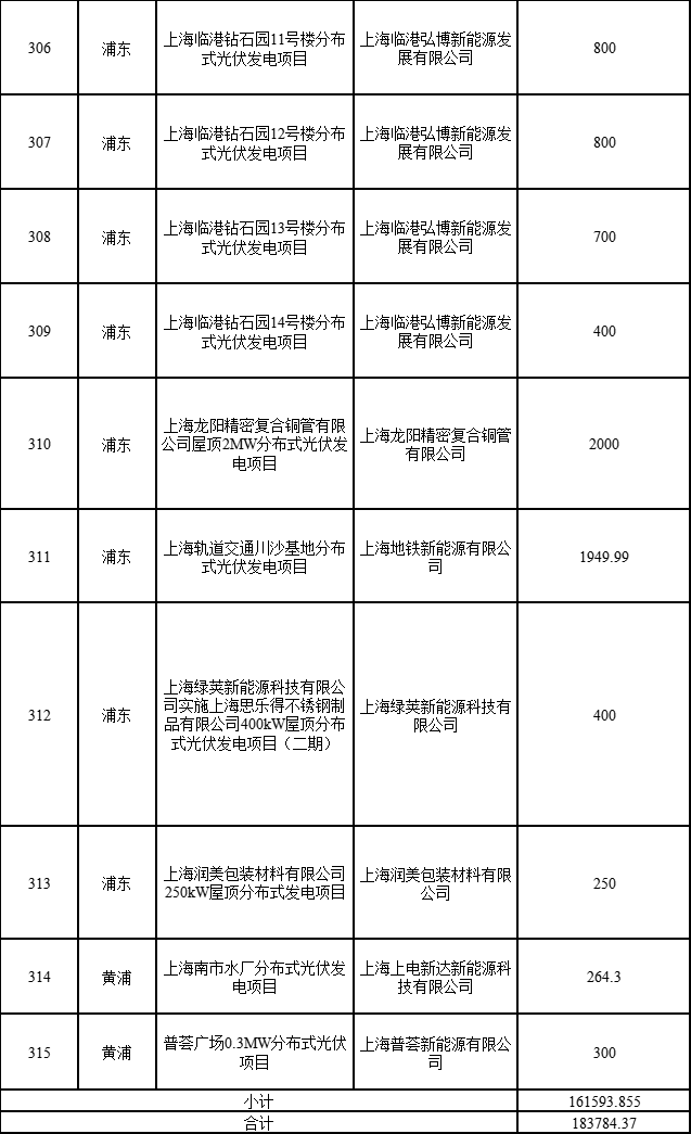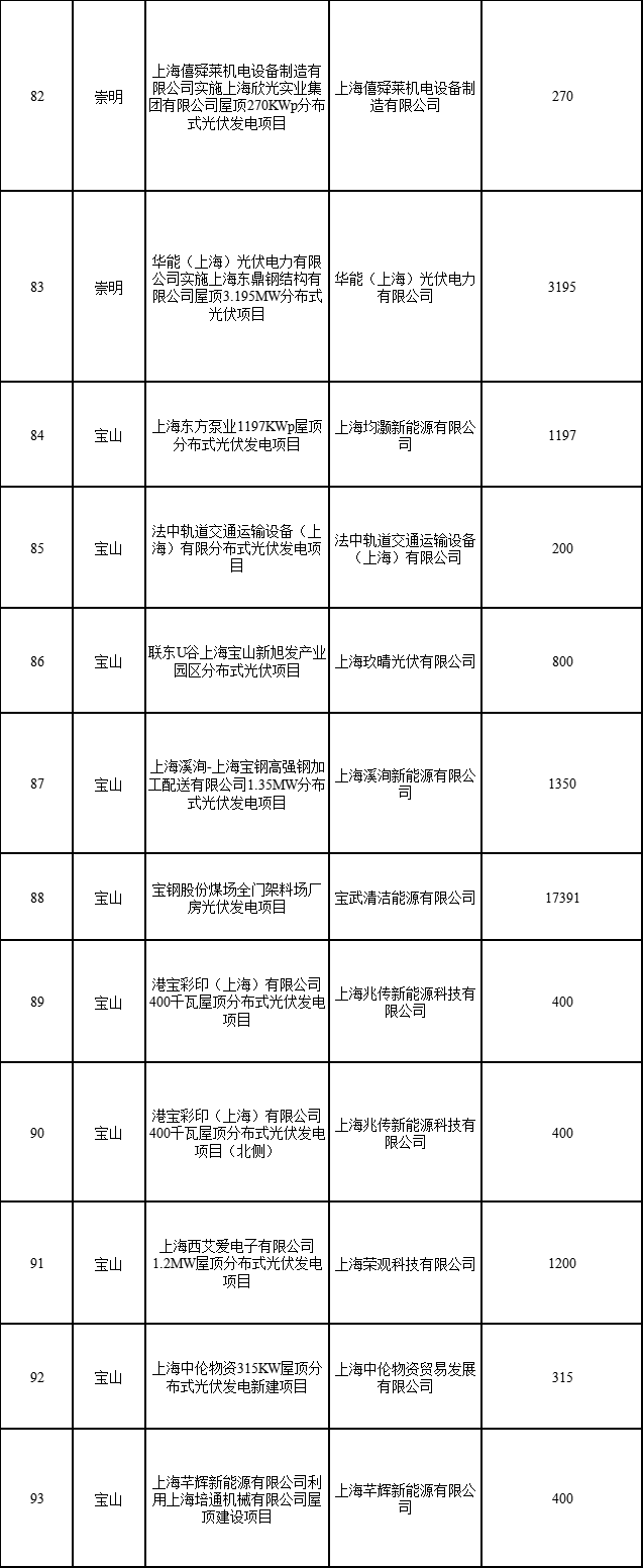日前,上海市發(fā)展改革委公布2022年第二批可再生能源和新能源發(fā)展專(zhuān)項(xiàng)資金獎(jiǎng)勵(lì)目錄的通知,通知指出,共有1775個(gè)項(xiàng)目納入獎(jiǎng)勵(lì)目錄,總裝機(jī)容量249376.418千瓦。其中,海上風(fēng)電項(xiàng)目1個(gè)(合計(jì)45500千瓦)、光伏電站項(xiàng)目1個(gè)(3499.97)、企業(yè)分布式光伏項(xiàng)目315個(gè)(合計(jì)183784.37千瓦)、居民光伏項(xiàng)目1458個(gè)(合計(jì)16592.078千瓦)。