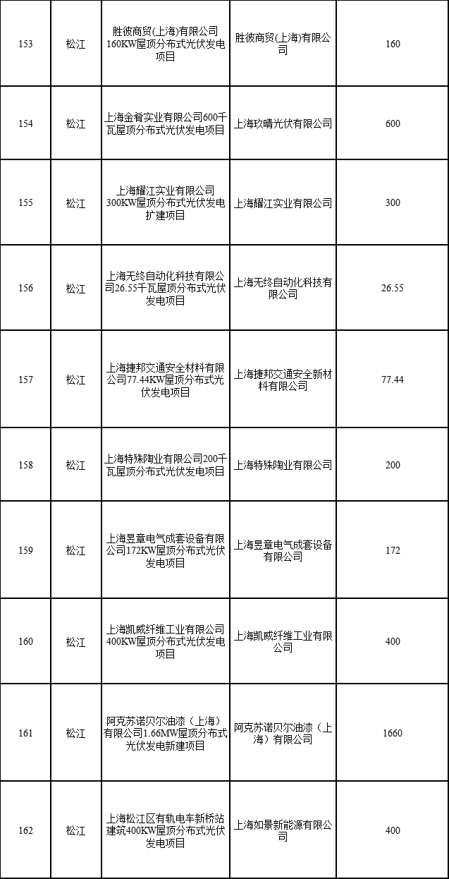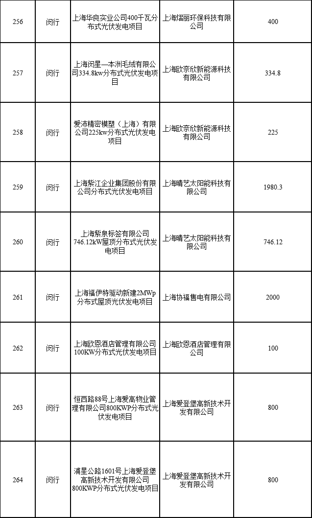 13個(gè)項(xiàng)目申請(qǐng)項(xiàng)目變更條件予以確認(rèn),其中:企業(yè)分布式項(xiàng)目5個(gè)。(1)經(jīng)青浦區(qū)發(fā)展改革委申請(qǐng)核實(shí),“上海電氣建筑節(jié)能有限公司利用國(guó)展中心屋頂建設(shè)2.2MW分布式光伏電站項(xiàng)目(2017年第二批目錄)”,單位名稱(chēng)從“上海電氣建筑節(jié)能有限公司”變更為“上海電氣數(shù)智生態(tài)科技有限公司”。(2)經(jīng)崇明區(qū)發(fā)展改革委申請(qǐng)核實(shí),“上海綠兆新能源科技有限公司實(shí)施崇匠建設(shè)(上海)有限公司52.02KW屋頂分布式光伏發(fā)電項(xiàng)目(2021年第一批目錄)”,單位名稱(chēng)從“上海綠兆新能源科技有限公司”變更為“崇電科技(上海)有限公司”。(3)經(jīng)嘉定區(qū)發(fā)展改革委申請(qǐng)核實(shí),“上海圣飛新能源嘉定區(qū)興賢路789號(hào)上海連盈螺絲有限公司559千瓦分布式光伏發(fā)電項(xiàng)目(2021年第一批目錄)”,單位名稱(chēng)從“上海圣飛新能源科技有限公司”變更為“嘉興勝錦新能源有限公司”。(4)經(jīng)金山區(qū)發(fā)展改革委申請(qǐng)核實(shí),“上海復(fù)鏑實(shí)業(yè)有限公司20千瓦分布式光伏發(fā)電項(xiàng)目(2018年第一批目錄)”,單位名稱(chēng)從“上海復(fù)鏑實(shí)業(yè)有限公司”變更為“上海復(fù)鐳投資管理有限公司”。(5)經(jīng)閔行區(qū)發(fā)展改革委申請(qǐng)核實(shí),“國(guó)核工程有限公司146.965KWp屋頂分布式光伏發(fā)電項(xiàng)目(2020年第一批目錄)”,單位名稱(chēng)從“國(guó)核工程有限公司”變更為“上海核工程研究設(shè)計(jì)院有限公司”。