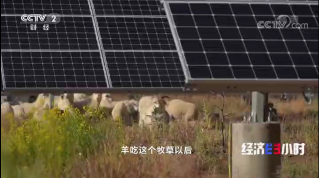 光伏、牧草、牛、牛糞共同有機(jī)循環(huán),達(dá)到以農(nóng)養(yǎng)牧,以木促農(nóng),種養(yǎng)互促的效果是這個光伏基地正在實(shí)施的目光互補(bǔ)項(xiàng)目,也是這里光伏治沙的關(guān)鍵之一。風(fēng)是沙漠的腿,肆虐的狂風(fēng)會帶著沙丘到處移動,治沙首先要讓沙漠不再流動,而光伏組件具有良好的黨風(fēng)防風(fēng)作用,而在光伏組件之間的沙地經(jīng)過土壤改良,種植下的牧草則可以用來鎖住水分,固定好沙土。