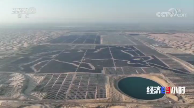 利用光伏板與周圍低矮植被,黃沙間的色差由19.6萬余塊光伏組成了一匹奔騰駿馬,這一匹占139.84萬平方米的駿馬,2019年還通過了吉尼斯世界紀(jì)錄認(rèn)證,成為世界上最大的光伏板圖形。