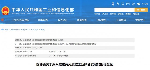 12月12日,工信部、國家發(fā)改委、住建部、水利部四部委發(fā)布《關于深入推進黃河流域工業(yè)綠色發(fā)展的指導意見》。