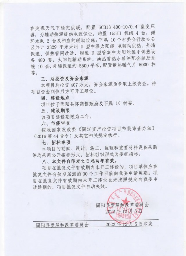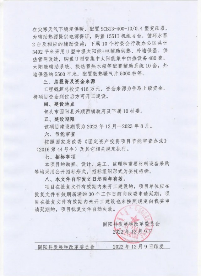 《固陽(yáng)縣懷朔鎮(zhèn)政府空氣能供熱和村委辦公場(chǎng)所太陽(yáng)能取暖"零碳排放”節(jié)能改造項(xiàng)目批復(fù)公示》