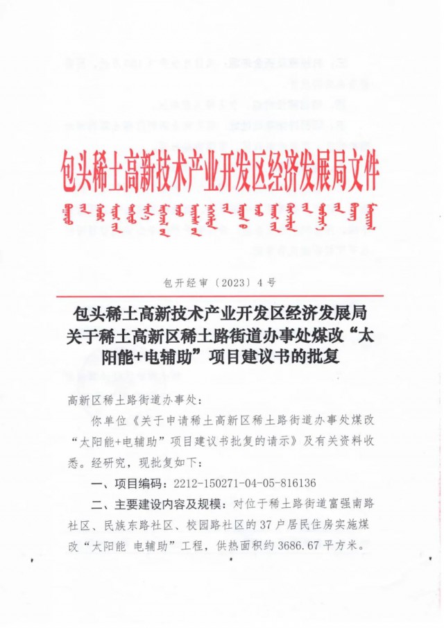《稀土高新區(qū)稀土路街道辦事處煤改“太陽(yáng)能電輔助”項(xiàng)目批復(fù)公示》