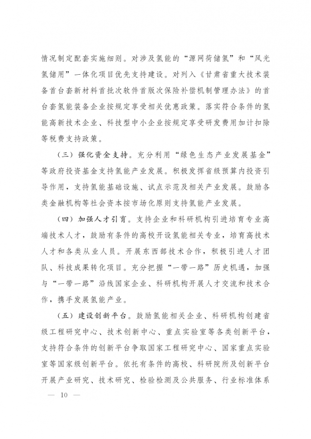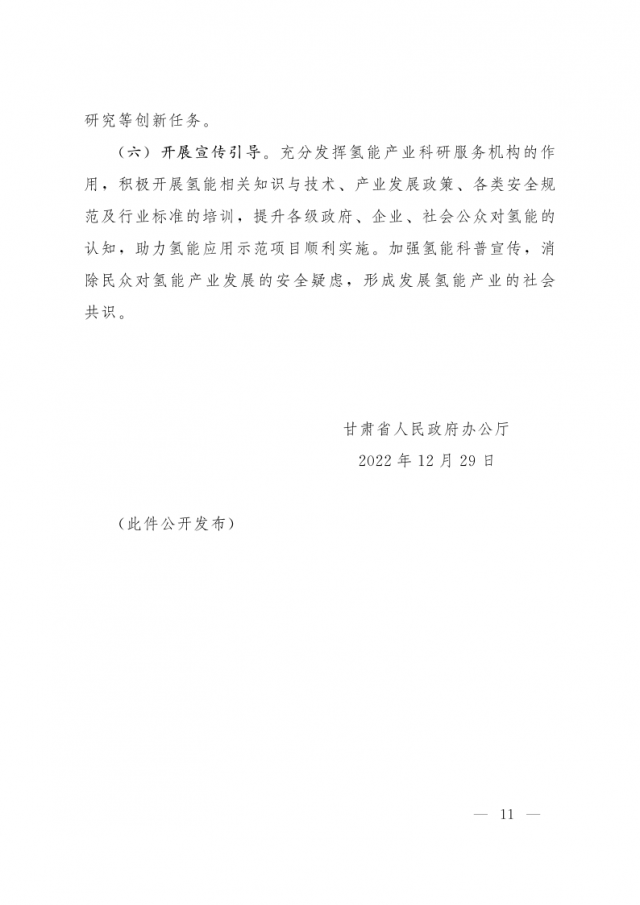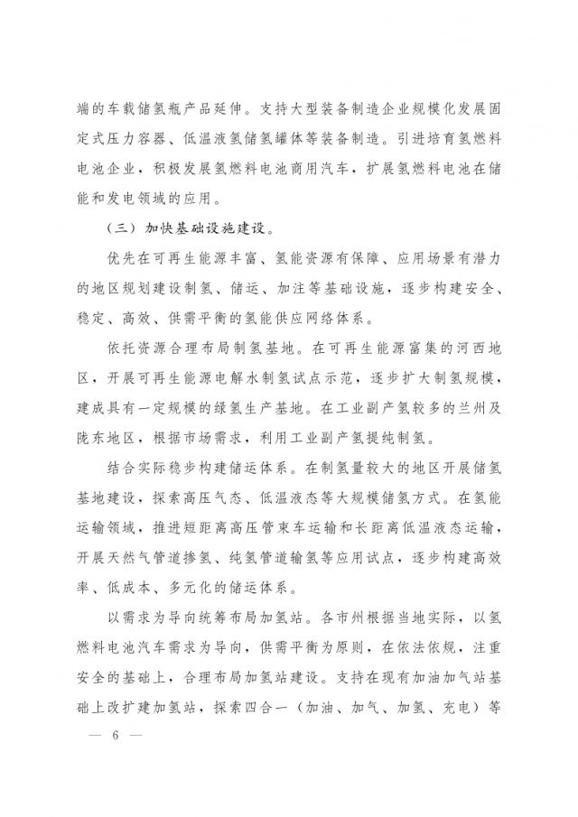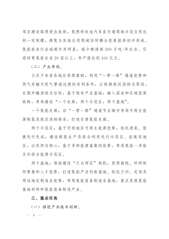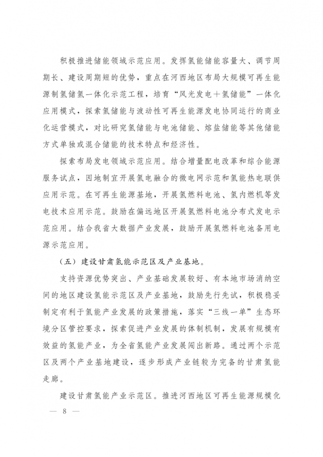 1月3日,甘肅省人民政府辦公廳發(fā)布關(guān)于氫能產(chǎn)業(yè)發(fā)展的指導(dǎo)意見(jiàn),意見(jiàn)指出,支持在高速公路服務(wù)區(qū)內(nèi)布局建設(shè) “分布式光伏+制氫、儲(chǔ)氫、加氫”一體化示范應(yīng)用。培育 “風(fēng)光發(fā)電+氫儲(chǔ)能”一體化應(yīng)用模式,探索氫儲(chǔ)能與波動(dòng)性可再生能源發(fā)電協(xié)同運(yùn)行的商業(yè)化運(yùn)營(yíng)模式,對(duì)比研究氫儲(chǔ)能與電池儲(chǔ)能、熔鹽儲(chǔ)能等其他儲(chǔ)能方式單獨(dú)或混合儲(chǔ)能的技術(shù)特點(diǎn)和經(jīng)濟(jì)性。