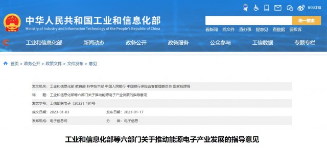 1月17日,工信部等六部門發(fā)布《關(guān)于推動能源電子產(chǎn)業(yè)發(fā)展的指導(dǎo)意見》(以下簡稱《意見》)。