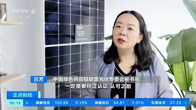 近日,CCTV2-中央電視臺財經(jīng)頻道記者王耐、張華一行深入浙江、江蘇等地,采訪光伏回收相關(guān)企業(yè)、高校和行業(yè)協(xié)會負責人,調(diào)研了解國內(nèi)光伏回收產(chǎn)業(yè)現(xiàn)狀及發(fā)展。中國綠色供應鏈聯(lián)盟光伏專委會光伏回收產(chǎn)業(yè)發(fā)展合作中心秘書長呂芳接受央視記者采訪,重點介紹了光伏回收產(chǎn)業(yè)市場規(guī)模及現(xiàn)階段面臨的問題和挑戰(zhàn)。該報道于7月24日在CCTV2-中央電視臺財經(jīng)頻道的正點財經(jīng)欄目播出。