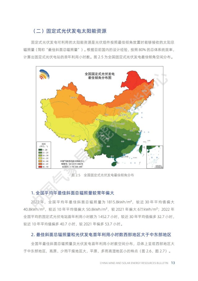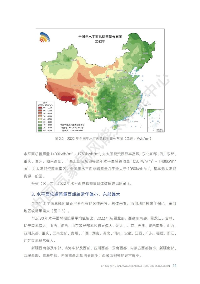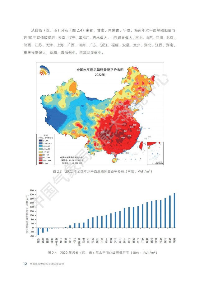 根據(jù)中國(guó)氣象局公布的《2022年中國(guó)風(fēng)能太陽(yáng)能資源年景公報(bào)》,太陽(yáng)能資源每年都會(huì)發(fā)生變化。其中,2022年為太陽(yáng)能資源大年,全國(guó)平均的年水平面總輻射量比近30年平均值高出約3%。因此,2022年的光伏發(fā)電量應(yīng)該普遍偏好!