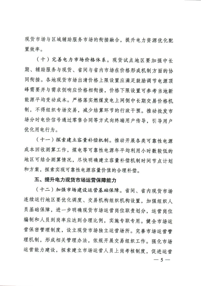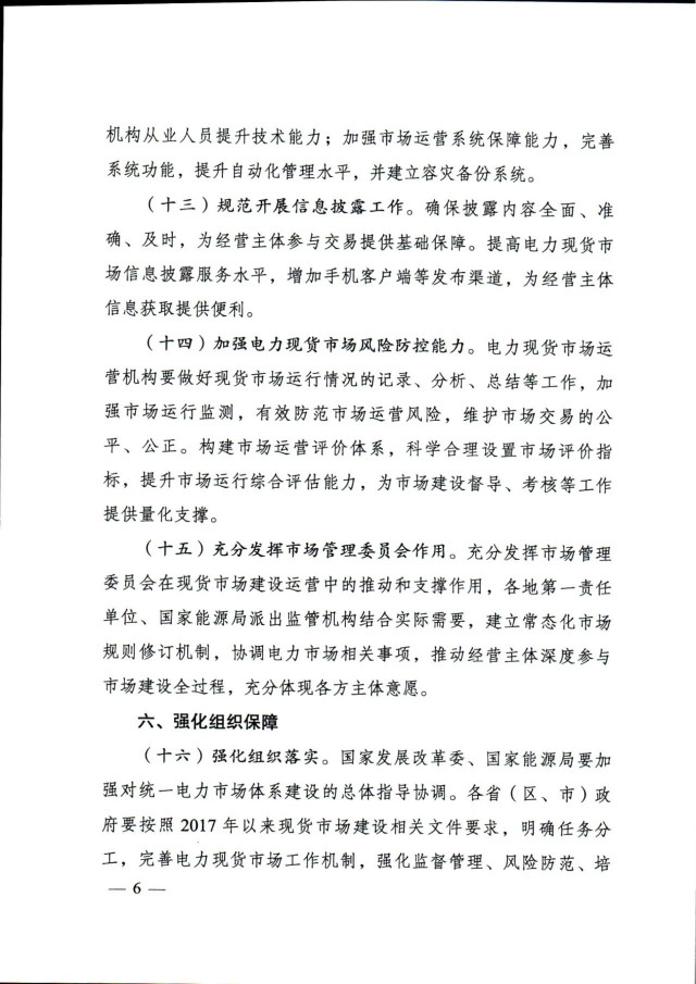 通知提出,加快放開各類電源參與電力現(xiàn)貨市場(chǎng)。按照2030年新能源全面參與市場(chǎng)交易的時(shí)間節(jié)點(diǎn),現(xiàn)貨試點(diǎn)地區(qū)結(jié)合實(shí)際制定分步實(shí)施方案。分布式新能源裝機(jī)占比較高的地區(qū),推動(dòng)分布式新能源上網(wǎng)電量參與市場(chǎng),探索參與市場(chǎng)的有效機(jī)制。暫未參與所在地區(qū)現(xiàn)貨市場(chǎng)的新能源發(fā)電主體,應(yīng)視為價(jià)格接受者參與電力現(xiàn)貨市場(chǎng)出清,可按原有價(jià)格機(jī)制進(jìn)行結(jié)算,但須按照規(guī)則進(jìn)行信息披露,并與其他經(jīng)營(yíng)主體共同按市場(chǎng)規(guī)則公平承擔(dān)相應(yīng)的不平衡費(fèi)用。