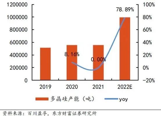 2022年下半年新建硅料產(chǎn)能開(kāi)始逐步投放,根據(jù)百川盈孚統(tǒng)計(jì),2022年國(guó)內(nèi)多晶硅有效產(chǎn)能將達(dá)到99.55萬(wàn)噸,同比增加78.89%,硅料新建產(chǎn)能投產(chǎn)將直接拉動(dòng)石英坩堝需求。