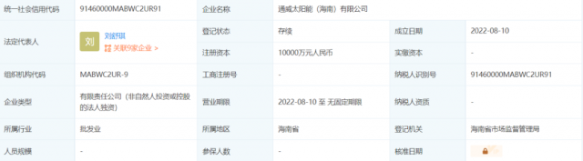 8月10日,通威太陽能(海南)有限公司注冊成立,法定代表人為劉舒琪,注冊資本1億人民幣,經(jīng)營范圍包括: