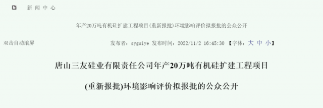 唐山三友硅業(yè)有限責任公司年產(chǎn)20萬噸有機硅擴建工程項目(重新報批)